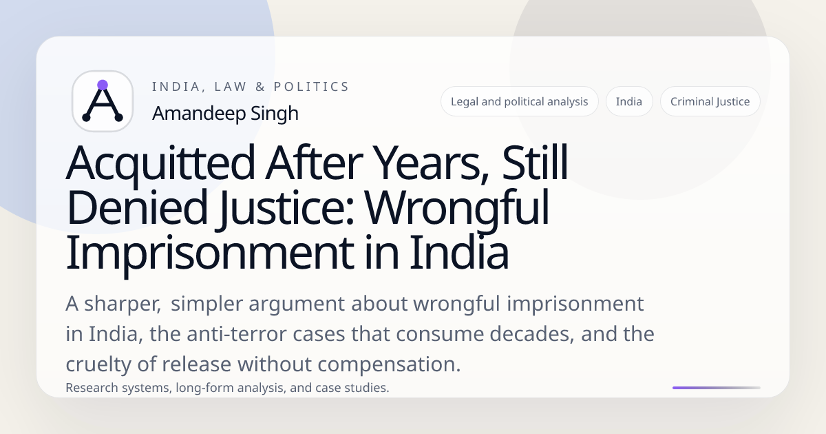 India has a wrongful-imprisonment problem, and the real scandal is not only that innocent people spend years in jail. The scandal is that even after courts clear them, the state usually gives them nothing.