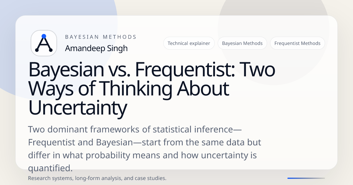 Statistical inference is how we learn from data: we estimate unknown quantities, quantify uncertainty, and make decisions under noise. Two paradigms dominate modern inference—Frequentist and Bayesian—and while they often start from the same likelihood and the same dataset, they differ in what probability means, what is considered random, and how conclusions should be interpreted.