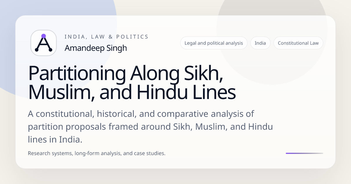 Partitioning India along Sikh, Muslim, and Hindu lines is best understood not as a realistic constitutional blueprint, but as a high-stakes test of constitutional theory, federal design, minority protection, and the limits of identity-based territorial politics.