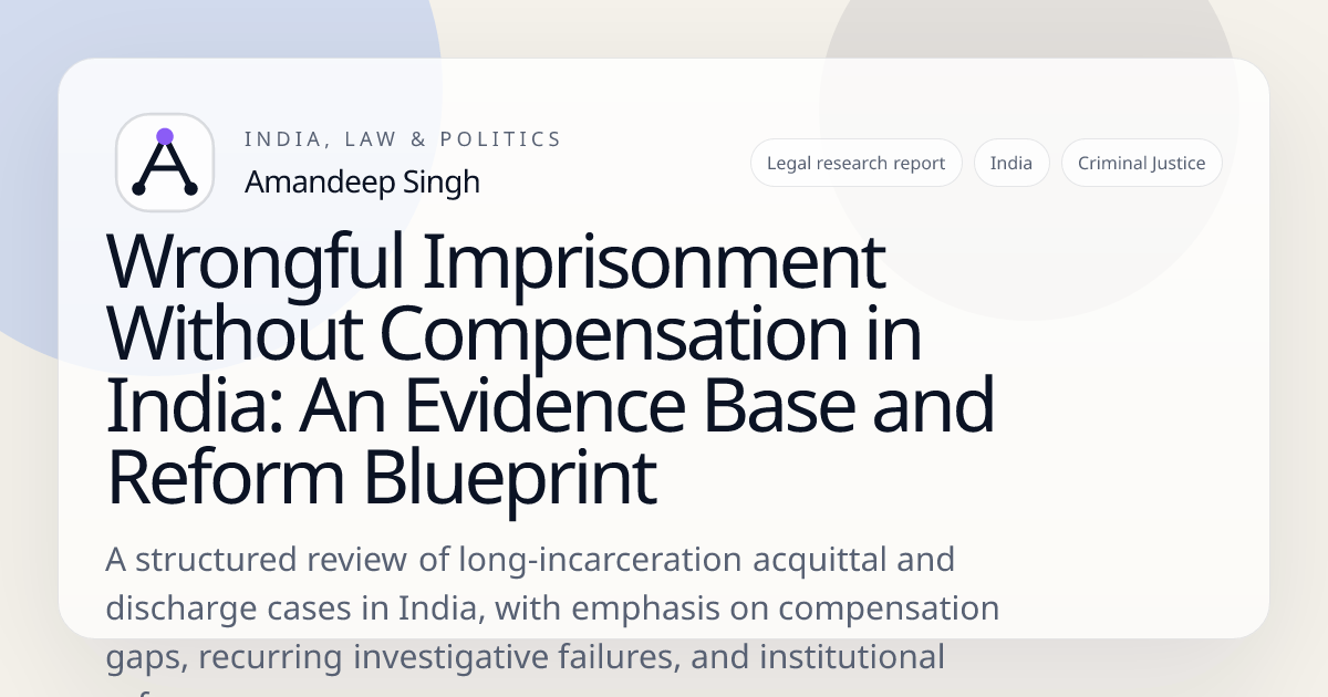 This report compiles an evidence base of Indian individual case records in which people were incarcerated for years, later acquitted, discharged, or had convictions set aside, and did not receive state compensation, or no publicly verifiable compensation could be identified.